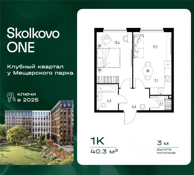 Прямая продажа от застройщика! Жилой комплекс в двух шагах от Мещерского парка Квартира в корпусе 4 | 42,5 м² | 2 этаж из 9 | Дом сдан Откройте для себя новый уровень жизни в ЖК "Skolkovo ONE" — единственном жилом комплексе с собственным приватным выходом в Мещерский парк. Преимущества ЖК "Skolkovo ONE": Эксклюзивная локация: Живите в гармонии с природой, не отказываясь от ритма мегаполиса: Мещерский парк (465 га) в двух шагах от дома — ваши персональные "легкие" в черте города. 5 минут до Инновационного центра "Сколково" — соседство с технологиями будущего. 20 минут до Москва-Сити — идеальный баланс уединения и доступности. 10 минут до метро "Озерная", "Говорово" Бизнес-класс в английском стиле: Клубный формат в духе английской архитектуры с панорамным остеклением и французскими балконами. Комфортная этажность, 9 этажей. Фасады из натуральных материалов. Smart-планировки: мастер-спальни, два санузла, гардеробные. Панорамные виды на лес и парк из окон. Квартиры без отделки — реализуйте собственный стиль и воплотите любые дизайнерские решения. Комфорт и сервис: Консьерж-сервис, дизайнерские лобби с зонами для работы и отдыха. Дендропарк во дворе, детская инфраструктура и продуманные общественные пространства. ЖК "Skolkovo ONE" — клубный жилой комплекс для тех, кто ценит баланс между динамикой мегаполиса и уединением природы. Узнайте подробности и забронируйте свою квартиру у наших менеджеров!