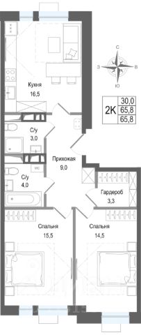 Продаётся 2-комнатная квартира в строящемся доме (Корпус 3), срок сдачи: II-кв. 2028, общей площадью 65.8 кв.м., на 3 этаже. ЖК "Киноквартал" , МО, г. Королев, мкр. Первомайский, ул. Солнечная, д. 2