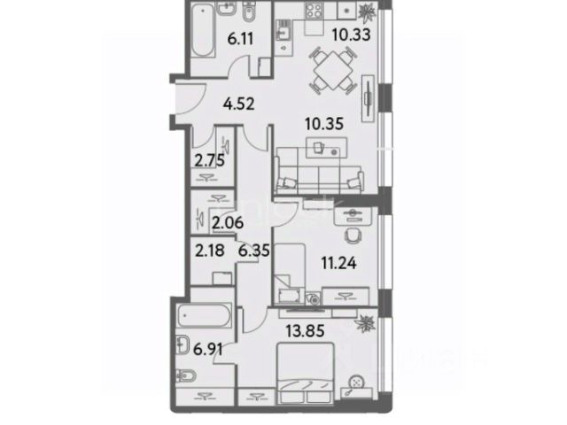 Квартира отличается дизайнерским ремонтом, который подчеркивает современный стиль и комфорт. Функциональная планировка включает два совмещенных санузла, что очень удобно для большой семьи. В квартире есть одна лоджия, которая станет отличным местом для отдыха.