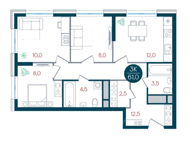 Продаётся 2-комнатная квартира в строящемся доме (Корпус 3), срок сдачи: III-кв. 2026, общей площадью 61 кв.м., на 25 этаже. Новый жилой комплекс "Кавказский бульвар 51/2" от Концерна Русич