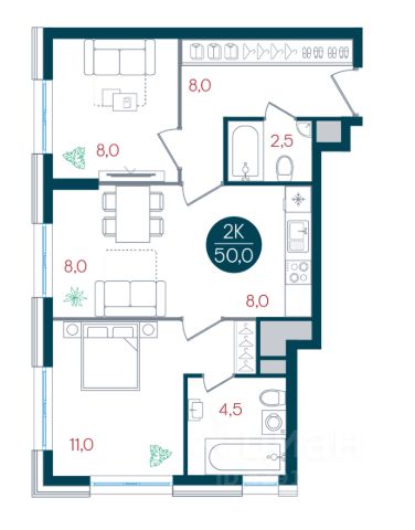 Продаётся 2-комнатная квартира в строящемся доме (Корпус 2), срок сдачи: I-кв. 2026, общей площадью 55 кв.м., на 8 этаже. Новый жилой комплекс "Кавказский бульвар 51/2" от Концерна Русич