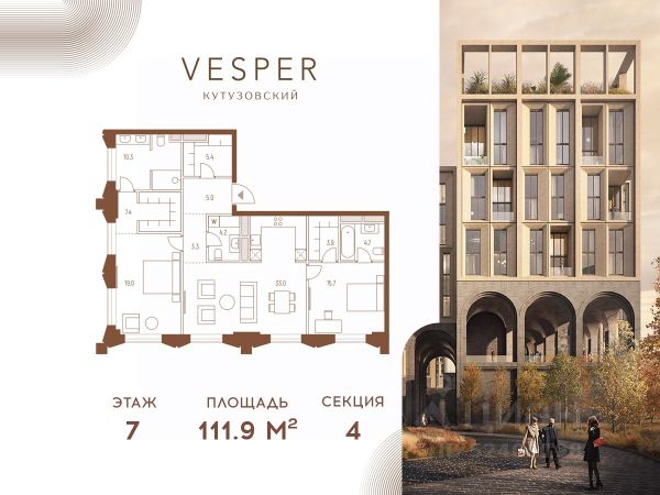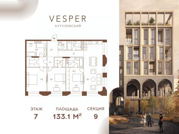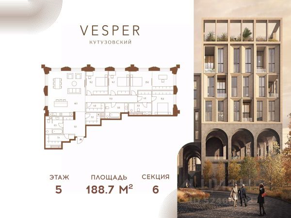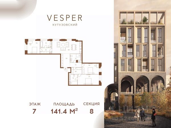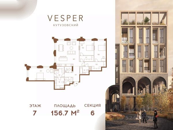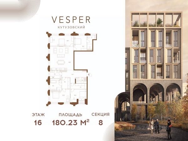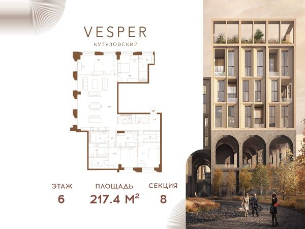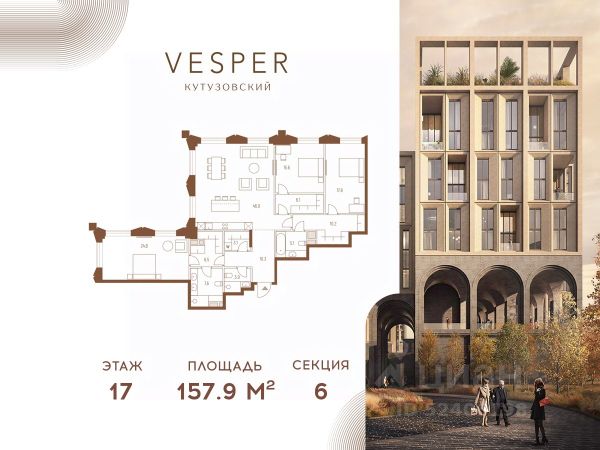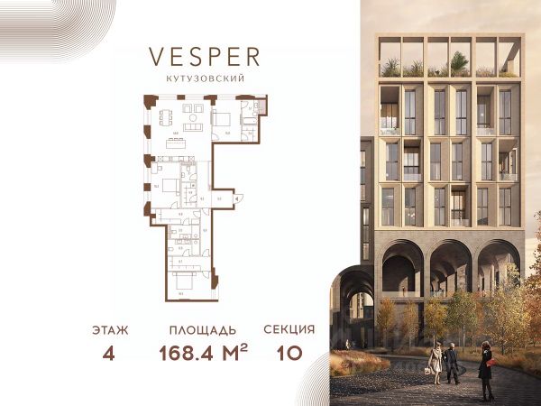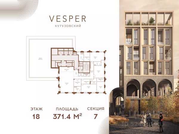 Продается 3-комнатная квартира без отделки в корпусе 4.1 общей площадью 462,3 кв.м. на 18 этаже. Знаковый проект для ценителей комфортной городской среды от Vesper. Квартал площадью 3,7 га расположен на Кутузовском проспекте и воплощает новую концепцию идеально сбалансированного места для жизни. Благодаря удачному расположению и развитой транспортной инфраструктуре отсюда одинаково быстро добираться как до Кремля и ММДЦ "Москва-Сити", так и до Рублево-Успенского шоссе. Планировочные решения проекта Vesper Кутузовский включают широкую линейку жилых форматов и подойдут для самых взыскательных резидентов: помимо базовых вариантов квартир доступны эксклюзивные лоты — пентхаусы с террасами и квартиры с патио. Продуманная приватная инфраструктура, собственный ландшафтный парк, близость магазинов и ресторанов делают Vesper Кутузовский достойным выбором для самых взыскательных клиентов: как для тех, кто любит уединение, так и для резидентов, которые стремятся быть в центре событий. Концепция жилого квартала разработана ODA Architecture. Разная высотность 10 строений, плавные линии и главный паттерн из арок, размер которых меняется в зависимости от дома и этажа, создают визуальный ритм квартала и делают его легким и элегантным, наполненным солнечным светом и воздухом.