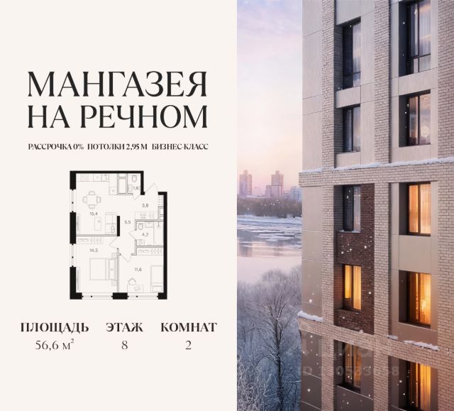 В продаже 1-к квартира площадью 38.5 м2. Функциональная планировка, кухня-гостиная, просторные санузел и гардеробная. Квартира расположена на 5-м этаже 12-этажного дома. Стоимость указана с учетом скидки 10%, экономия составит 2 541 385 рублей! Стоимость квартиры без скидки 25 413 850 рублей. Условия покупки со скидкой 10%: - 100% оплата - Базовая ипотека Условия покупки без скидки: - Семейная ипотека от 3,5% на весь срок - Ипотека 0,11% на первый год - Рассрочка без процентов - Trade-in с проживанием на время строительства дома "Мангазея на Речном" расположена рядом с набережной, парками и территорией Северного речного вокзала. Первая очередь проекта два дома 12 и 24 этажа с приватным двором, ландшафтным благоустройством и инфраструктурой только для резидентов: кинозал, коворкинг, переговорные, зоны отдыха и комнаты для занятия фитнесом. Инфраструктура: - Школа на 1000 мест и детский сад - Дом Wellness со СПА-центром, фитнесом и массажными кабинетами и два бассейна, один из них под открытым небом - Два бассейна, один из них под открытым небом - Прогулочная набережная протяженностью 3,2 км с террасами - Зона воркаута и детские площадки - Ретейл, кафе, рестораны и бутики на первых этажах - Причалы для остановки яхт и небольших катеров Транспортная доступность: - 10 минут пешком до м. Речной вокзал - 15 минут пешком до м. Беломорская - 15 минут на машине до Белорусского вокзала - 17 минут на машине до Садового Кольца В первых корпусах "Мангазеи на Речном" представлены квартиры бизнес-класса с мастер-спальнями, террасами и видами на парк. Эксклюзивные форматы лоты с увеличенной высотой потолков и собственными выходом на благоустроенную территорию.