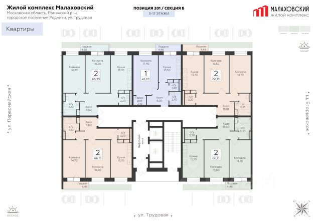 Продается 1-к квартира площадью 39.13 кв. м с черновой отделкой. Квартира расположена на 3 этаже 17 этажного дома, в 203 корпусе. "Малаховский" - жилой комплекс в Раменском районе Подмосковья, идеально подходящий для семей с детьми. Проект от федерального застройщика ГК "Развитие" находится в тихом и зеленом микрорайоне Родники и отличается удобной транспортной связью с Москвой и Люберцами. Три дома высотой 17 этажей с видами на озеро и парк, просторные квартиры, приватный двор-патио с ландшафтным дизайном и доступная инфраструктура обеспечат жителям новых квартир все преимущества городской жизни в живописном природном окружении. Транспортная доступность - Удобный выезд на Егорьевское шоссе и строящуюся магистраль МЕТК (Москва - Егорьевск - Тума - Касимов); - 18 км от МКАД; - 5 мин. до МЦД-3 "Удельная"; - 29 мин. до метро "Лермонтовский проспект". Архитектура Дома отличаются высокой тепло- и шумоизоляцией, долговечностью, высоким уровнем энергоэффективности и современным внешним видом. Фасады выполнены в спокойной цветовой гамме. Из окон с широкоформатным остеклением открываются виды на березовую рощу, озеро и зеленые дворы. Логичным продолжением архитектуры становятся просторные входные группы, где продумано всё: витражное остекление, высокие потолки, дизайнерская отделка, два выхода на обе стороны дома, а также современные лифты (грузовой и пассажирский) и колясочные. Планировочные решения Планировки комплекса "Малаховский" функциональны и эргономичны, что упрощает зонирование и расстановку мебели. Квартиры оснащены гардеробными, лоджиями с панорамным остеклением, двумя санузлами (даже в однокомнатных) и просторными прихожими. Высота потолков - 2,7 м. Квартиры сдаются с отделкой white box, которая позволит воплотить индивидуальный дизайн-проект по своему вкусу. Доступны варианты отделки "под ключ" с применением лучших дизайнерских материалов. Благоустройство В жилом комплексе тщательно продумана концепция благоустройства. Через всю территорию тянутся живописные прогулочные бульвары с ландшафтным дизайном и всесезонным озеленением. Рядом обустроено 3 современных детских площадки с мягким покрытием, а для взрослых предусмотрены уютные лаунж-зоны для общения, тихого отдыха и спорта на свежем воздухе. Двор каждого дома свободен от машин, а для дополнительного уюта и безопасности здесь установлено современное освещение. Естественным продолжением дворового ландшафта становится березовая роща с природными тропинками и небольшим водоемом, прилегающая к жилому комплексу. Инфраструктура и окружение - Наземный паркинг на 55 машино-мест и гостевая парковка; - Все повседневные сервисы (кафе, магазины, салоны красоты) прямо в вашем доме; - Фитнес-клуб, бассейн, спортивные площадки и велодорожки в многочисленных парках микрорайона Родники; - 2 школы, гимназия и детский сад в шаговой доступности; - ТЦ "Родники" с рестораном и супермаркетом; - Петропавловский парк с благоустроенным детским городком и волейбольной площадко