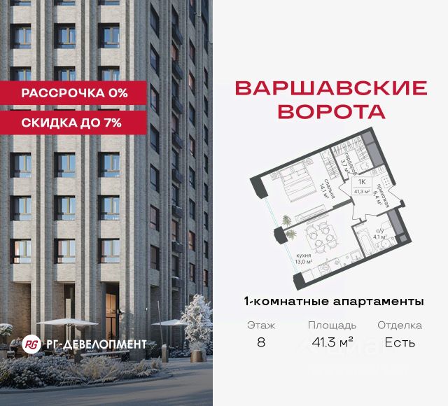 Рассрочка 0% + скидка 5%. Первый платёж 50% при ДДУ, второй 50% — через 12 мес. до ввода ЖК. Продаются 1-комнатные апартаменты 46.3 кв.м. в МФК "Варшавские ворота" на 15-м этаже 30 этажного дома. МФК "Варшавские ворота" — это проект, в котором учтен широкий спектр требований: от транспортной доступности и развитой инфраструктуры до архитектурной выразительности и экологического окружения. Апартаменты в МФК "Варшавские ворота" подойдут для тех, кто ищет продуманное жилье в Москве или готовый инвестиционный актив. Апартаменты здесь — это: - возможность жить комфортно в удобном городском формате — с природой, метро, сервисом и паркингом; - возможность купить лот с готовой отделкой, чтобы вложить минимальные инвестиции в ремонт и получить максимум возможностей от сдачи; - экономия на налоге на имущество, кадастровая стоимость апартаментов ниже ~ на 30% кадастровой стоимости квартиры; - высокая инвестиционная доходность объекта за счет более низкой цены покупки по сравнению с квартирой. Коротко о важном: - 1 минута пешком от м. Аннино; - Удобные выезды на Варшавское шоссе и МКАД; - Вид из окон на Битцевский лес и Аннинский лесопарк; - Высота потолков 2,7 - 3 м; - Закрытый двор-парк; - Школы и детские сады в 10-15 минутах пешком от дома; - Технические лоджии для размещения кондиционеров; - Подземный паркинг; - РГ-Девелопмент — ТОП-20 крупнейших застройщиков России. Проект сочетает в себе современную архитектуру и продуманное благоустройство с уникальным природным окружением. Всего в нескольких минутах от дома — девять парков, каскад прудов и крупнейшие лесопарковые зоны Москвы, создающие ощущение жизни в зеленом оазисе посреди мегаполиса. Архитектурная концепция - стиль Чикаго в Москве. Выполнена в минималистичной эстетике с использованием клинкера и декоративного кирпича. Фасады подчеркивают строгие линии и современный стиль, а входные группы разработаны московским бюро Syntaxis. Лобби оформлены с применением керамогранита, декоративной штукатурки и гипсовых панелей, детали из латуни добавляют изысканности. Пространство оживляют гербарии, композиции из сухоцветов и авторские панно. Проект находится в одной минуте пешком от метро "Аннино", в 12 минутах от станции "Улица Академика Янгеля" и рядом с МЦД-2 "Красный Строитель". Для автомобилистов предусмотрен прямой выезд на Варшавское шоссе и два съезда на МКАД, что позволяет быстро добираться в любую часть города. Среди планировочных решений представлены разнообразные форматы: от функциональных студий до просторных 4-комнатных квартир и апартаментов площадью от 22 до 105 м². Высокие потолки усиливают ощущение простора, а продуманные планировки включают мастер-спальни, гардеробные, угловые окна, объединённые кухни-гостиные и несколько санузлов. Центральное пространство комплекса — закрытый двор без машин. Он разделён на функциональные зоны: детские игровые комплексы, спортивные площадки, воркаут-зоны и уютные места для тихого отдыха. На первых этажах размес