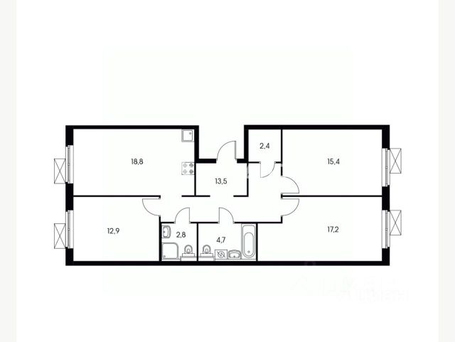 В продаже — четырехкомнатная квартира, общей площадью 121,79 кв. м. Квартира расположена на втором этаже девятиэтажного корпуса Оптимум в квартале В16 нового района СберСити, который строит Сбер. Архитектуру квартала В16 создало итальянское бюро ARCHEA middle east: каждый дом узнаваем, но вместе они складываются в спокойный, цельный ансамбль. В облицовке сочетаются тёплые оттенки кирпича и металла, за счёт игры фактур фасады выглядят живыми и меняются в разное время дня. Строгая геометрия поддерживает ритм города, а мягкая природная палитра помогает чувствовать себя дома, а не в деловом квартале. Дом возводится по технологии монолитного строительства. Квартиры передаются без отделки, что позволяет будущим владельцам реализовать собственные дизайнерские решения и индивидуальные планировки. В квартирах предустановлена система "умный дом", объединяющая управление квартирой, домом и прилегающей территорией. Можно регулировать климат и освещение голосом или через смартфон. Квартал состоит из девяти домов средней этажности — от 7 до 10 этажей. Корпуса формируют большой внутренний двор площадью два гектара. Во дворе предусмотрены зоны для разных сценариев: просторные площадки для детей, пространства для активного досуга и спорта, тихие места для отдыха и спокойного времени, а также удобные рабочие места под открытым небом. Здесь легко найти своё — для жизни, здоровья и занятий тем, что действительно нравится. В домах класса Оптимум предусмотрена детская игровая комната и общественная терраса для досуга резидентов — с диванной группой и зоной для йоги с деревянным настилом, где можно проводить время на свежем воздухе. В доме предусмотрены: уютное лобби с зоной ожидания, лапомойка, санузел, зона коворкинга в лобби, детская игровая комната на первом этаже, общественная терраса, помещение для хранения колясок и велосипедов, подземный паркинг. СберСити — это новый жилой и деловой район на западе Москвы, в одном из самых экологически чистых и престижных мест столицы. Это первая в России и крупнейшая в мире инновационная городская среда, созданная по международным стандартам зелёного проектирования. Здесь внедряются решения в области энергоснабжения, вакуумного мусороудаления, тестирования зелёных технологий, а в дальнейшем — системы искусственного интеллекта для управления домами и городской инфраструктурой. Строительство проекта началось в 2021 году, заселение первых корпусов — с лета 2024-го. Общая площадь территории — 461 га, из них более 2,5 млн кв. м жилья и около 833 тыс. кв. м офисных пространств. Будет построено 7 школ, 13 детских садов и 2 поликлиники. В СберСити будут жить 65 тыс. человек и работать 70 тыс. Развитием территории занимается АО "Рублёво-Архангельское", входящее в группу Сбер. СберСити — место, где хочется жить, работать и растить детей. Переезжайте в СберСити!