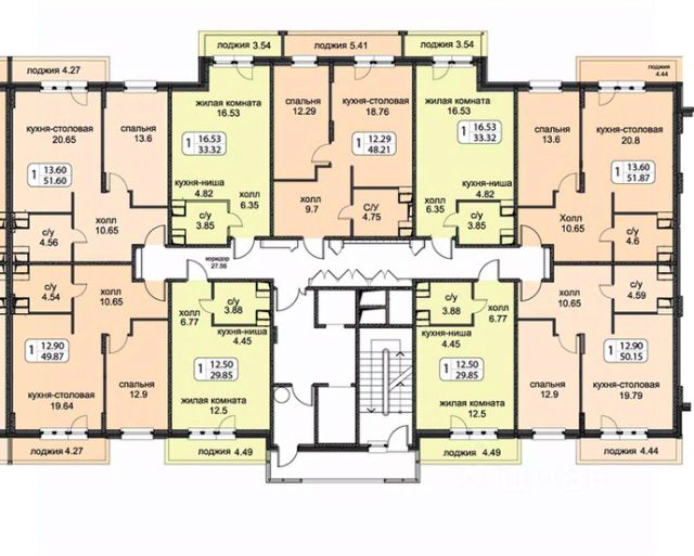 Общая площадь: 53.70 м.кв., Жилая площадь: 31.00 м.кв., Площадь кухни: 16.00 м.кв., Кухня-гостинная