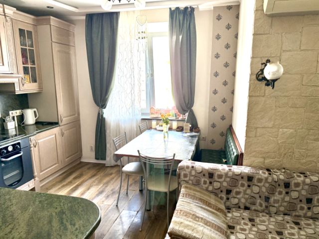 Продается квартира в монолитно кирпичном доме, на территории которого расположен подземный паркинг, детская игровая площадка, огороженная территория. В квартире сделан дизайнерский ремонт, кухню объединили с большой гостиной, панорамные окна, большой балкон, аудио система. Две изолированные спальни, третью спальню объединили с комнатой, и сделали гардеробную. Два санузла в итальянской плитке (Джакузи). Большая прихожая. Пол паркетная доска. Есть подземный паркинг Один взрослый собственник.
