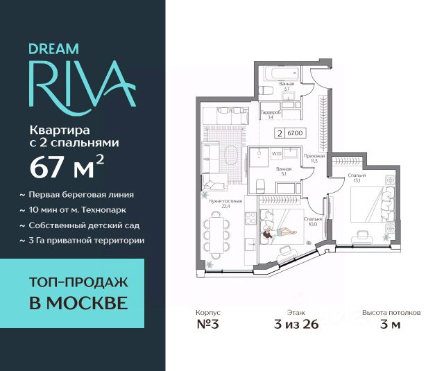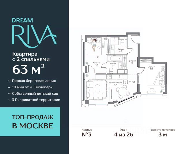 48.2 кв.м, 2 комнат, 2 этаж. Высота потолков 3 м. Квартира без отделки — возможность реализовать собственный дизайн-проект. Предусмотрены места для кондиционеров. ЛОКАЦИЯ И ТРАНСПОРТ • 15 минут на авто до Садового кольца, • 30 минут до Москва-Сити и Кремля. Метро "Технопарк" в пешей доступности. В перспективе — станция "Остров мечты". ИНФРАСТРУКТУРА КВАРТАЛА • 3 га приватного двор-парка с зонами для спорта, йоги и отдыха • Благоустроенная набережная с гастропроменадом • Клубные лобби: гостиная с камином, детское игровое кафе, lounge-бар • SPA-центр и фитнес • Государственные детский сад и школа на территории • Открытая и подземная парковки ПРИВИЛЕГИИ РЕЗИДЕНТОВ • Приоритетный доступ к инфраструктуре города-курорта: • Пляжный клуб Dream Beach Club, • Яхт-клуб Dream Marine Resort, • Вейк-клуб, • Парк развлечений. • 44 га парков для прогулок и спорта вокруг квартала. БЕЗОПАСНОСТЬ И КОМФОРТ • Закрытая территория, • Охрана, • Видеонаблюдение, • Консьерж-сервис. • Современные инженерные системы и технологии умного дома. ЗАСТРОЙЩИК Regions Development — более 15 лет на рынке. Портфолио: парк "Остров мечты", колесо обозрения "Солнце Москвы", ЖК Dream Towers. Звоните, чтобы договориться о просмотре! Продаётся 2-квартира на 2 этаже 26-этажного дома (AQUA корп.3 корпус). Общая площадь: 48.2 кв.м. Высота потолков от 3.15 м.