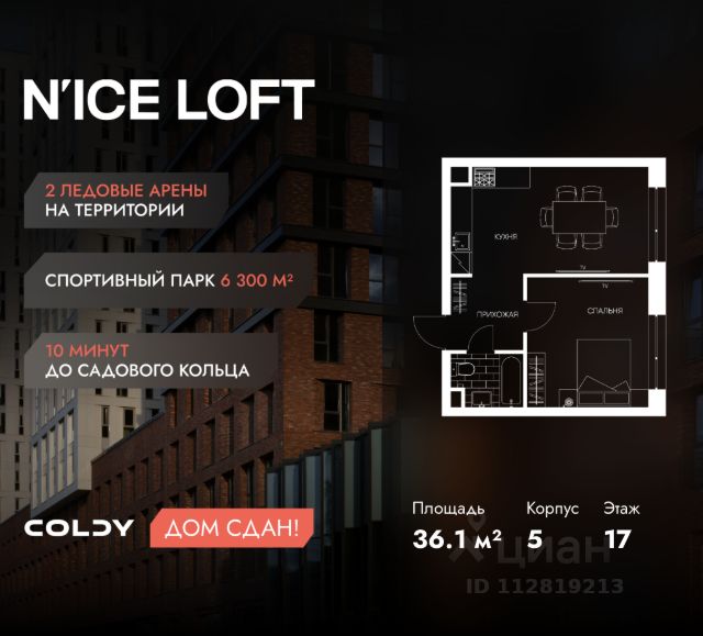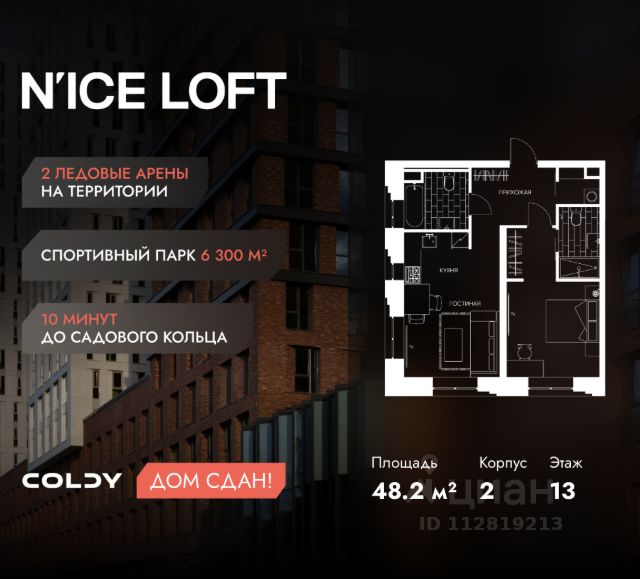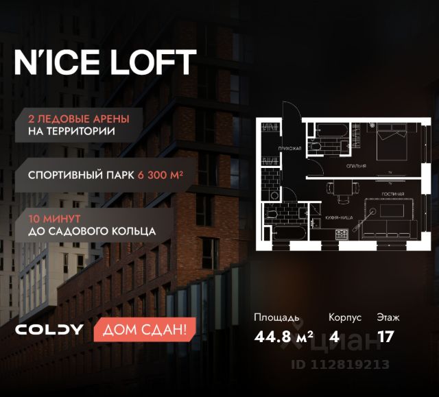 NICE LOFT — готовый жилой квартал с собственным спортивным кластером в 10 минутах от Садового кольца Комплекс апартаментов бизнес-класса NICE LOFT, девелопером которого выступила компания Coldy, представляет собой знаковое жилое пространство, на территории которого органично объединены высококачественная инфраструктура для комфортной жизни и полноценный спортивный кластер. NICE LOFT — новая спортивная доминанта Москвы, где для жителей и их гостей предусмотрено более 20 000 м², созданных специально для тренировок, игр, восстановления и оздоровления. Автором выразительной городской эстетики выступило архитектурное бюро APEX. Строгие силуэты фасадов эффектно возвышаются над благоустроенным окружением, а световые блики элегантно подчеркивают структурное фасадное остекление. Сердце проекта — физкультурно-оздоровительный комплекс с двумя ледовыми аренами формата НХЛ — профессиональными площадками. Помимо спортивных арен на территории NICE LOFT предусмотрено пять многофункциональных залов, где каждый, сможет реализовать свой спортивный потенциал. Для тех, кто предпочитает тренировки и прогулки на свежем воздухе, создан спортивный парк общей площадью 6 300 м² с воркаут-зонами, игровыми площадками и уединенными пространствами для отдыха. Также внутри квартала проложена километровая беговая дорожка, которая доступна к использованию в любое время года. Особое внимание архитекторы уделили входной группе — просторное авторское лобби с потолками до 9 метров с использованием природных элементов. Резиденты и их гости смогут насладиться садом, не покидая пределы дома. Территория апарт-комплекса NICE LOFT соответствует современным стандартам безопасности: инновационная система видеонаблюдения, охраняемый подземный паркинг и круглосуточный консьерж-сервис. Преимущества NICE LOFT: Готовый жилой квартал с собственным спортивным кластером в 10 минутах от Садового кольца Современная архитектура с выразительными контрастными фасадами Спортивная инфраструктура 20 000 м²: 2 ледовые арены формата НХЛ, 5 залов, беговая дорожка 1 км Спортивный парк 6 300 м² с зонами для разных видов активностей Более 10 видов спорта в одном кластере Апартаменты с панорамными окнами и потолками до 5 метров Видовые лоты с террасами и патио Авторское лобби с потолками до 9 метров Консьерж-сервис 24/7 Охраняемый подземный паркинг Купить квартиру в стиле loft в Москве.
