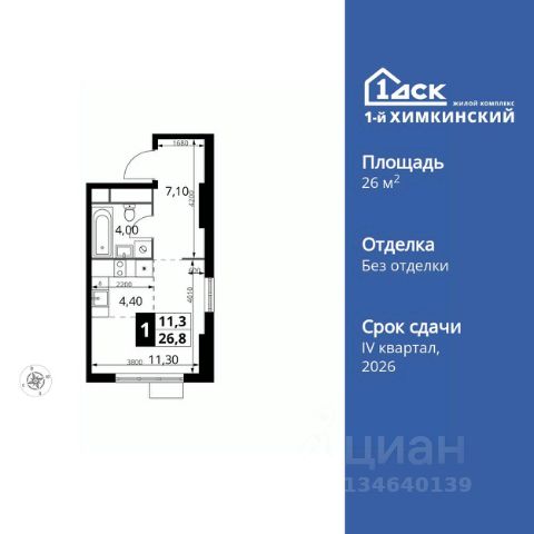 Прямая продажа от застройщика! Жилой Комплекс класса Комфорт. Продаётся квартира-студия номер 289 общей площадью 26.8 кв.м. на 16-м этаже 16 этажного здания. Без отделки. Особенности квартиры: - Линейная планировка - максимальная функциональность и удобство. - Увеличенное количество окон - дополнительное освещение и свежий воздух. - Увеличенная высота потолков - ощущение простора и легкости. - Ниша под шкаф - компактное и удобное место для вещей. Информация о комплексе: Квартал класса комфорт плюс, где современное городское пространство граничит с удивительной природой вокруг. 1-й Химкинский расположен на территории в 102 га и органично вписан в природное окружение Химкинского леса и канала им. Москвы. В проекте предусмотрена богатая коммерческая инфраструктура с собственным торговым центром, общеобразовательные учреждения и социальные объекты. Изюминкой жилого комплекса будут спортивно-оздоровительный комплекс с термами и SPA и семейный парк развлечений. Транспортная доступность: ЖК "1-й Химкинский" дает возможность выбрать любой способ передвижения как до города, так и до самых разных объектов, которые могут представлять интерес для его жителей. Не важно, какой способ передвижения вы предпочитаете, успевать всегда и везде можно вне зависимости от выбора транспорта. - 8 мин. пешком (800 м) до остановки "Золотая Арка" -10 мин пешком (1 км) до остановки "Поворот на Ивакино" Внутренняя инфраструктура: - Безопасность: закрытые дворы без машин, безбарьерная среда и сквозные подъезды, камеры на детских площадках с возможностью трансляции на смартфоне - Идеальный отдых в кругу семьи: семейный парк развлечений на территории, торговый центр (2-х этажный) общей площадью более 8 тыс. кв. м с фудкортом - Образование: 3 детских сада и современная муниципальная школа на 2450 мест - Спортивная среда: закольцованный веломаршрут с навигацией, спортивный комплекс с термами, закрытый тренажерный зал и зоны ворк-аута - Социальные объекты: поликлиника со станцией скорой помощи, пожарное депо - Подземный паркинг и кладовые помещения на -1 этаже, станция техобслуживания и автомойка на территории