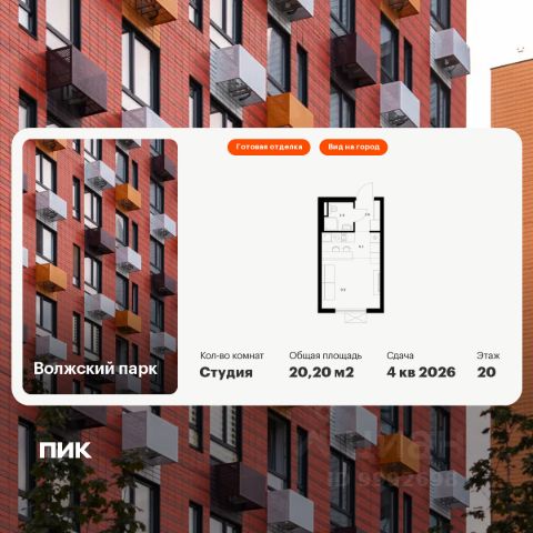 Продаётся квартира-студия площадью 20,1 кв.м на 2 этаже 24 этажного дома (Корпус 6.2, Секция 1) проекта ПИК Волжский парк. Светлый просторный подъезд на уровне земли, функциональная планировка, большие окна, c отделкой. Жилой район "Волжский парк" строится на юго-востоке Москвы. Отсюда до метро "Текстильщики" — 15 минут пешком, а до Садового кольца можно доехать за 10 минут. В проекте 15 жилых домов, детский сад, школа, подземные и надземные паркинги. Вокруг — обжитый район, где есть всё для комфортной жизни: удобный транспорт, детские сады, школы, поликлиники, магазины, кинотеатры и фитнес-клубы. Рядом есть места для отдыха и прогулок — парки, бульвары и пруды. А для любителей спорта — большой спортивный комплекс "Москвич" с бассейном, ледовым катком и большим количеством взрослых и детских секций. В проекте предусмотрена медленная зона для электросамокатов — с 7 утра до полуночи при въезде на территорию квартала скорость электросамокатов автоматически снижается до 15 км/ч. Артикул 976171 (Застройщик АО "Специализированный застройщик "Волжский парк"")