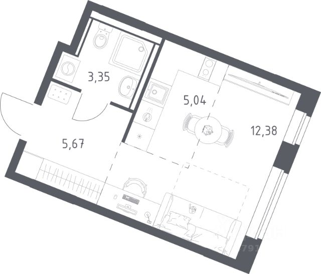 В продаже студия в корпусе 6 ЖК 'Квартал Западный'. Квартира располагается на 7 этаже, общая площадь 23.52 м2.