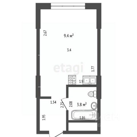 Студия без отделки, что даёт возможность создать интерьер под свой вкус и бюджет, расставьте акценты и зонируйте пространство так, как удобно именно вам.