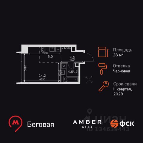 Прямая продажа от застройщика! Успейте забронировать квартиру до повышения стоимости! Жилой Комплекс премиум-класса. Продаётся 1-к квартира номер 393 общей площадью 28.6 кв.м. на 28-м этаже 46 этажного дома. Отделка Whitebox. Цена с учётом скидки! Особенности квартиры: - Линейная планировка - максимальная функциональность и удобство. - Увеличенная ширина окна/окон - больше света и визуального простора. - Гибкая планировка - создайте пространство по своему вкусу. - Можно оборудовать рабочее место - комфорт для работы и учёбы. - Линейная кухня - функциональность и практичность в одном решении. - Проходная кухня-гостиная - идеальное пространство для общения и готовки. - Ниша под шкаф - компактное и удобное место для вещей. Квартира с предчистовой отделкой (White box). Вам не придется заниматься черновыми и трудоёмкими работы, а чистовую отделку и дизайн - сделайте на свой вкус. Информация о комплексе: Amber City - это не просто квартал. Это место, куда ведут все маршруты, где рождается вдохновение работать и творить, где счастлива семья и жизнь кипит 24/7. Модная архитектура, высокотехнологичные решения и самодостаточная инфраструктура приближают Amber City к лучшим районам Гонконга и Нью-Йорка. Потрясающие виды на Москва-Сити и центр позволяют заряжаться их амбициозностью, не подчиняясь суете. Стремящиеся ввысь небоскребы, благоустроенный парк с зонами отдыха для взрослых и детей, а также многочисленные объекты инфраструктуры возводятся в западной части центра Москвы. Транспортная доступность: Квартал отличается исключительной транспортной доступностью: большая часть значимых мест Москвы находится на расстоянии 15-20 минут. Такое расположение позволит полностью погрузиться в деловую и культурную жизнь столицы и тратить на дорогу только необходимый минимум времени. Общественный транспорт: - Станция метро "Беговая" - 5 минут пешком - Станция "Беговая" (МЦД-1) - 5 минут пешком - Ж/д станция Беговая - 12 минут пешком - Остановка "2-й Хорошёвский проезд" - 3 минуты пешком - Станция метро "Звенигородская" (строящаяся) - 10 минут пешком На автомобиле: - Звенигородское шоссе - 3 минуты - TTK - 5 минут - Хорошёвское шоссе - 9 минут - Садовое кольцо - 12 минут - Красная Пресня - 15 минут - Тверская - 20 минут - Серебряный бор - 8 минут - Строгинский затон - 8 минут - Москва-Сити - 10 минут - Кремль - 20 минут - Аэропорт Шереметьево - 40 минут Внутренняя инфраструктура: Умелая работа над ландшафтом позволила правильно зонировать многоуровневое пространство, общей площадью 6 гектаров, открывая разнообразные возможности для резидентов Amber City и их детей. Главной артерией квартала станет собственный зеленый бульвар. Он начнется с площади у входа на территорию и, объединяя все внутренние пространства, пройдет через ключевые площади с арт-объектами, водными зонами и архитектурными формами. Дополнительные пространства для отдыха будут размещены в закрытых зеленых дворах на стилобате. Здесь будут расположены