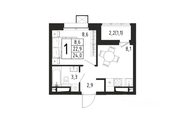 Продаётся 1-комнатная квартира 465, площадью 29,00 м², на 11 этаже в ЖК "Бригантина" корпус 1. Стоимость — от 10971084 руб. Квартира без отделки, планировка односторонняя, окна во двор.