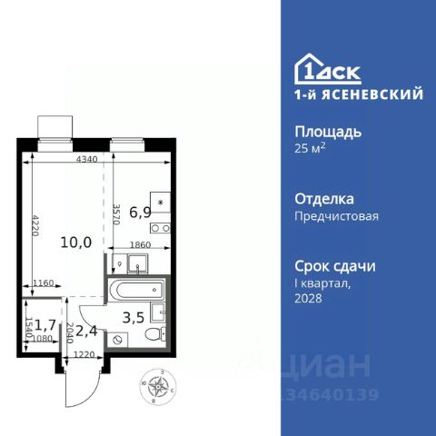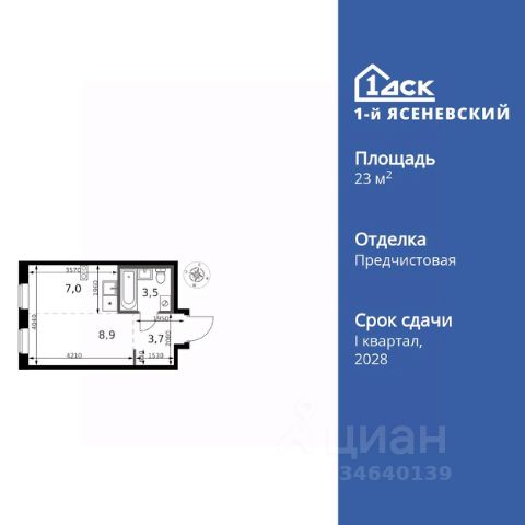 Прямая продажа от застройщика! Жилой Комплекс класса Комфорт Плюс. Продаётся квартира-студия номер 5 общей площадью 23.7 кв.м. на 2-м этаже 8 этажного здания. Предчистовая отделка. Цена с учётом скидки. Особенности квартиры: - Квартиры рядом с метро - м. Корниловская 9 мин пешком - 63 га лесопарка за окнами - Школа c ИТ-кластером и бассейном. 2 детских сада - Организуем показ в удобное для вас время! - Линейная планировка - максимальная функциональность и удобство. - Увеличенное количество окон - дополнительное освещение и свежий воздух. - Можно оборудовать рабочее место - комфорт для работы и учёбы. - Ниша под шкаф - компактное и удобное место для вещей. Квартира с предчистовой отделкой. Вам не придется заниматься черновыми и трудоёмкими работы, а чистовую отделку и дизайн - сделайте на свой вкус. Информация о комплексе: ЖК "1-й Ясеневский": преимущества городской инфраструктуры и природы. Пешая доступность к метро, школе с бассейном и ИТ-кластеру, а также 63 га Троицкого лесопарка под окнами. Закрытая территория с бульварами, велодорожками, кафе и дворами без машин. Фруктовые деревья и городские сады создают уникальную атмосферу. Всего в 1 км от МКАД - идеальный баланс для современной жизни. Транспортная доступность: До метро "Корниловская" - 12 минут пешком До метро "Тютчевская" - 25 минут пешком До метро "Теплый стан" - 10 минут на транспорте До метро "Ольховая" - 30 минут на общественном транспорте Личный автотранспорт: Выезд на Калужское шоссе - 500 м МКАД - 1 км Внутренняя инфраструктура: ЖК "1-й Ясеневский" - идеальное место для семей с детьми. Рядом Троицкий лесопарк для прогулок, а во дворах - современные детские площадки, разработанные с участием психологов. В шаговой доступности два детских сада и школа на 1100 мест с ИТ-кластером, бассейном и классами робототехники. Всё для счастливого детства и успешного будущего. Квартира с предчистовой отделкой - ваш дизайн без черновых работ