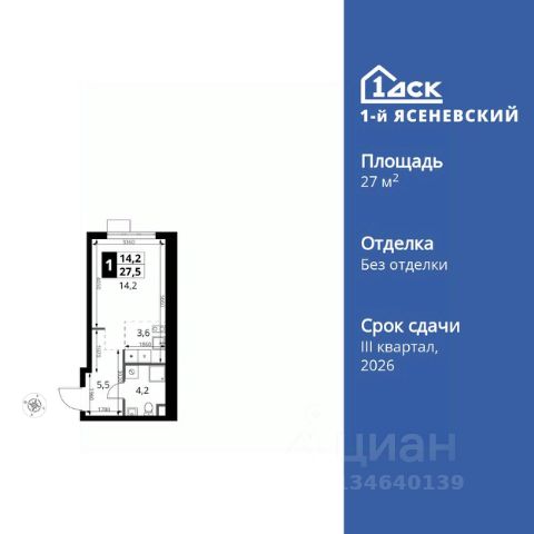 Прямая продажа от застройщика! Жилой Комплекс класса Комфорт Плюс. Продаётся квартира-студия номер 5 общей площадью 23.7 кв.м. на 2-м этаже 8 этажного здания. Предчистовая отделка. Цена с учётом скидки. Особенности квартиры: - Квартиры рядом с метро - м. Корниловская 9 мин пешком - 63 га лесопарка за окнами - Школа c ИТ-кластером и бассейном. 2 детских сада - Организуем показ в удобное для вас время! - Линейная планировка - максимальная функциональность и удобство. - Увеличенное количество окон - дополнительное освещение и свежий воздух. - Можно оборудовать рабочее место - комфорт для работы и учёбы. - Ниша под шкаф - компактное и удобное место для вещей. Квартира с предчистовой отделкой. Вам не придется заниматься черновыми и трудоёмкими работы, а чистовую отделку и дизайн - сделайте на свой вкус. Информация о комплексе: ЖК "1-й Ясеневский": преимущества городской инфраструктуры и природы. Пешая доступность к метро, школе с бассейном и ИТ-кластеру, а также 63 га Троицкого лесопарка под окнами. Закрытая территория с бульварами, велодорожками, кафе и дворами без машин. Фруктовые деревья и городские сады создают уникальную атмосферу. Всего в 1 км от МКАД - идеальный баланс для современной жизни. Транспортная доступность: До метро "Корниловская" - 12 минут пешком До метро "Тютчевская" - 25 минут пешком До метро "Теплый стан" - 10 минут на транспорте До метро "Ольховая" - 30 минут на общественном транспорте Личный автотранспорт: Выезд на Калужское шоссе - 500 м МКАД - 1 км Внутренняя инфраструктура: ЖК "1-й Ясеневский" - идеальное место для семей с детьми. Рядом Троицкий лесопарк для прогулок, а во дворах - современные детские площадки, разработанные с участием психологов. В шаговой доступности два детских сада и школа на 1100 мест с ИТ-кластером, бассейном и классами робототехники. Всё для счастливого детства и успешного будущего. Квартира с предчистовой отделкой - ваш дизайн без черновых работ