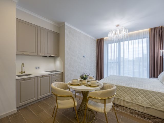 Квартира-студия объединяет в себе два основных пространства - кухню и жилую часть. Установлены энергоэффективные окна Schuco, высотой 2,7 с функцией проветривания. В санузле предусмотрено место для ванны. Возможно подключение к системе кондиционирования VRV.На этаже расположены кладовые помещения. В комплексе предусмотрена система очистки воды.
