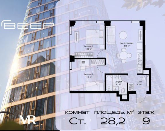 Старт продаж новой очереди! Продаётся студия общей площадью 28.19 м² без отделки в ЖК Веер на 9-м этаже 59 этажного дома. Веер.2 — вторая очередь футуристичного квартала бизнес-класса Веер. Это новая экосистема в престижном Западном округе Москвы, поражающая масштабностью внутренней инфраструктуры. ЖК находится всего в 5 минутах от Кутузовского проспекта и в 15 минутах от Сколково. Ансамбль из четырех стеклянных башен с доминантой в 237 метров разработан по принципу современного урбанизма и выражен в лаконичных объемах — параллелепипедах со сглаженными углами, которые придают зданиям утонченный вид. Расположение и транспортная доступность: • Образовательный комплекс в составе топовой школы, состоящий из двух зданий: основное на 1500 школьных и 450 дошкольных мест, отдельное здание детского сада на 300 мест. • Парк "Долина реки Сетунь" площадью более 700 гектаров • Рядом МГУ, МГИМО, РАНХиГС и Академия ФСБ • 15 минут по Кутузовскому проспекту до ужина в центре с видом на Москву-реку • 18 минут пешком до м. "Давыдково" • Открытие новых станций метро в шаговой доступности в будущем Инфраструктура: Двор в Веер.2 — это ассиметричные холмы, каменные "лабиринты", зеленые ковры и хвойные островки с единой живой экосистемой. Здесь есть все: • Павильон умиротворения Место отдыха под навесом в спокойной части двора, окруженное деревьями. • Активная тропа Тактильная дорога из камней разного диаметра для расслабляющих прогулок. • Бизнес-гарден Оборудованное пространство для работы на свежем воздухе со столом и встроенными розетками. • Детская площадка Двухуровневая площадка "Ботаника" с песочницей, переговорной трубой и горкой "Дружба". Компания MR предлагает своим клиентам специальные условия приобретения квартир в рамках программ ипотечного кредитования от банков-партнеров.