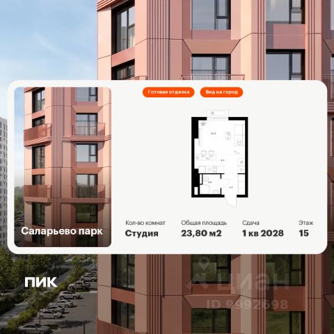 Продаётся квартира-студия площадью 29,3 кв.м на 3 этаже 24 этажного дома (Корпус 82.4, Секция 4) проекта ПИК Саларьево парк. Светлый просторный подъезд на уровне земли, функциональная планировка, большие окна, предчистовая отделка. Жилой район "Саларьево парк" расположен в Новой Москве, в четырёх километрах от МКАД по Киевскому шоссе. Две станции метро: "Саларьево" и "Филатов луг", — находятся в пешей доступности от проекта. Дойти до них можно за 510 минут. В квартале уже создана качественная среда, где есть абсолютно всё для полноценной жизни, работы и отдыха. Благодаря удобному расположению проекта всё важное будет рядом: детские сады, школы, кафе и рестораны, шопинг в торговых центрах, фитнес и даже аэропорт. Все корпуса в квартале гармонично сочетаются, образуя единую городскую среду. Между собой их объединяет невысокая этажность и натуральная цветовая гамма. Здесь приятно гулять и проводить время на улице всей семьёй. В "Саларьево парке" создана уникальная образовательная среда, включающая в себя шесть школ, рассчитанных на 6 250 учеников. Две из них уже открыты, их посещает 2 300 детей. Также на территории "Саларьево парка" находится 12 детских садов, один из которых с бассейном. Сейчас уже открыты 7 садов. В "Саларьево парке" открыта уникальная игровая площадка — PlayHub "Оригами". Здесь есть ручей, горка-труба и рельефные холмы. Взрослые смогут отдохнуть в уютном кафе, пока дети играют. Также на территории проекта есть SportHub — большая спортивная зона, разделённая по интересам и возрастам. Здесь можно заниматься разными видами спорта: футболом, баскетболом, волейболом и стритболом. Зимой центральную часть площадки превращают в каток. Во дворах-парках жилого квартала есть места для отдыха, детские и спортивные площадки. На первых этажах домов расположены магазины, кафе и полезные сервисы. Также вблизи проекта есть несколько масштабных торговых центров. До ТЦ "Саларис" пять минут пешком, до "Рио", Metro Cash & Carry и "Леруа Мерлен" — пять минут на автомобиле. Артикул 1032513 (Застройщик ООО "Специализированный Застройщик "Тирон")