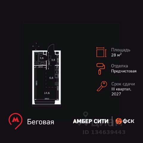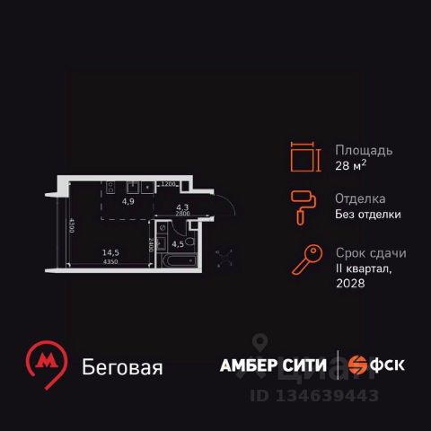 Отличная квартира в ЖК Headliner, в строящемся доме бизнес класса, общей площадью 29.31 кв.м., на 11 этаже. Без отделки. Переуступка права требования. Первая очередь сдана, заселена.