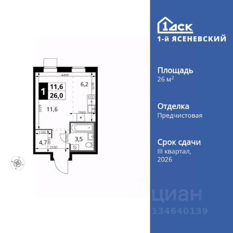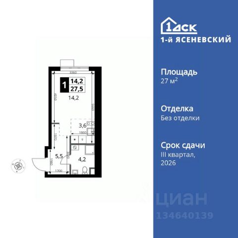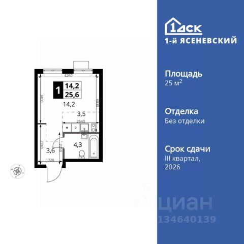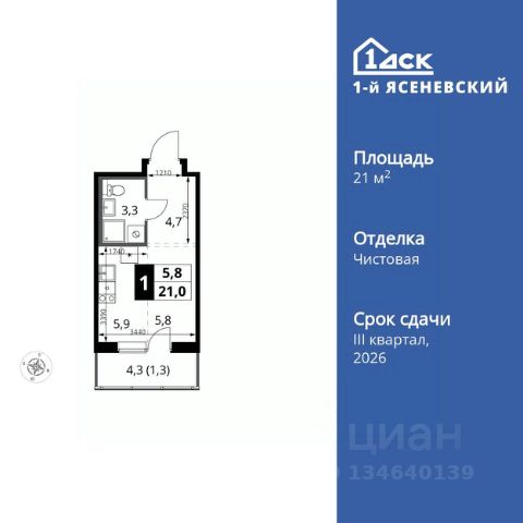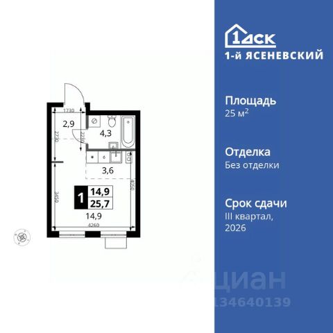 Прямая продажа от застройщика! Жилой Комплекс класса Комфорт Плюс. Продаётся квартира-студия номер 751 общей площадью 25.7 кв.м. на 16-м этаже 16 этажного здания. Без отделки. Особенности квартиры: - Квартиры рядом с метро - м. Корниловская 9 мин пешком - 63 га лесопарка за окнами - Школа c it-кластером и бассейном. 2 детских сада - Линейная планировка - максимальная функциональность и удобство. - Увеличенное количество окон - дополнительное освещение и свежий воздух. - Просторная ванная - место для расслабления и уединения. - Увеличенная высота потолков - ощущение простора и легкости. - Ниша под шкаф - компактное и удобное место для вещей. Информация о комплексе: В жилом комплексе комфорт-плюс класса "1-го Ясеневского" доступны преимущества двух стилей жизни. Ведь в пешей доступности метро, школа с 25-метровым бассейном и IT-кластером и при этом целых 63 га благоустроенного Троицкого лесопарка под окнами, где так приятно дышать свежим воздухом и слушать пение птиц. Собственная закрытая территория "1-го Ясеневского" представляет собой уютный оазис. Здесь и зеленый освещенный бульвар для прогулок, система велодорожек, маленькая городская площадь, кафе, пекарни и кофе поинты. А еще дворы без машин и многоэтажная парковка. Изюминка территории - фруктовые деревья во дворах и городские сады. "1-й Ясеневский" - всего в 1 км от МКАД, на территории новой Москвы. Жилой комплекс, где есть все необходимое для современного человека. Транспортная доступность: До метро "Корниловская" - 12 минут пешком До метро "Тютчевская" - 25 минут пешком До метро "Теплый стан" - 10 минут на транспорте До метро "Ольховая" - 30 минут на общественном транспорте Личный автотранспорт: Выезд на Калужское шоссе - 500 м МКАД - 1 км Внутренняя инфраструктура: ЖК "1-й Ясеневский" можно назвать идеальным местом для жизни семьи с детьми. Здесь буквально за домом находится Троицкий лесопарк - излюбленное место прогулок молодых родителей. А во внутренних дворах под детские площадки выделены специальные зоны. Они оборудованы всем, что нужно для счастливого детства: современными и максимально безопасными качелями, песочницами и лазалками. Оборудование и игровые сценарии на детских площадках спроектированы вместе с командой детских психологов для правильного развития ребенка и для повышения их интереса. Также рядом с домом два детских садика, один из которых уже построен и школа на 1100 мест. Школу по праву можно назвать образцовым учебным заведением. В ней закладываются основы успешного будущего. Здесь есть класс робототехники, IT-кластер, 25-метровый бассейн и прекрасно оборудованные спортзалы.