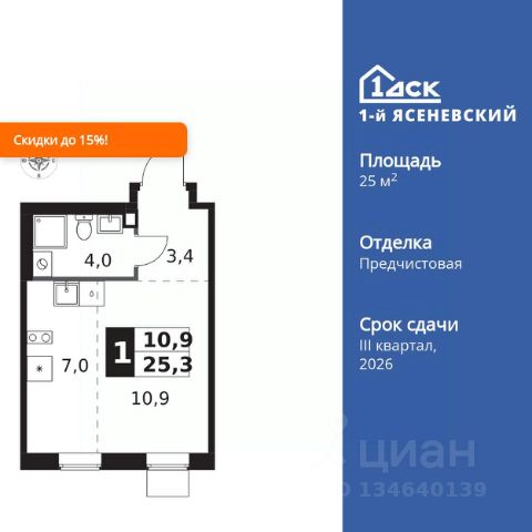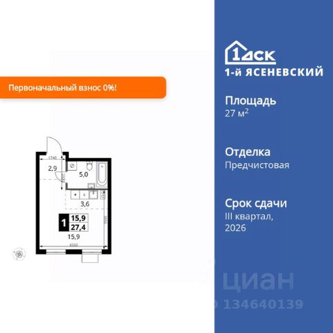 Прямая продажа от застройщика! Жилой Комплекс класса Комфорт Плюс. Продаётся квартира-студия номер 370 общей площадью 20.9 кв.м. на 8-м этаже 9 этажного здания. Отделка Whitebox. Особенности квартиры: - Квартиры рядом с метро - м. Корниловская 9 мин пешком - 63 га лесопарка за окнами - Школа c it-кластером и бассейном. 2 детских сада - Линейная планировка - максимальная функциональность и удобство. - Балкон - открытое пространство для отдыха. Квартира с предчистовой отделкой (White box). Вам не придется заниматься черновыми и трудоёмкими работы, а чистовую отделку и дизайн - сделайте на свой вкус. Информация о комплексе: В жилом комплексе комфорт-плюс класса "1-го Ясеневского" доступны преимущества двух стилей жизни. Ведь в пешей доступности метро, школа с 25-метровым бассейном и IT-кластером и при этом целых 63 га благоустроенного Троицкого лесопарка под окнами, где так приятно дышать свежим воздухом и слушать пение птиц. Собственная закрытая территория "1-го Ясеневского" представляет собой уютный оазис. Здесь и зеленый освещенный бульвар для прогулок, система велодорожек, маленькая городская площадь, кафе, пекарни и кофе поинты. А еще дворы без машин и многоэтажная парковка. Изюминка территории - фруктовые деревья во дворах и городские сады. "1-й Ясеневский" - всего в 1 км от МКАД, на территории новой Москвы. Жилой комплекс, где есть все необходимое для современного человека. Транспортная доступность: До метро "Корниловская" - 12 минут пешком До метро "Тютчевская" - 25 минут пешком До метро "Теплый стан" - 10 минут на транспорте До метро "Ольховая" - 30 минут на общественном транспорте Личный автотранспорт: Выезд на Калужское шоссе - 500 м МКАД - 1 км Внутренняя инфраструктура: ЖК "1-й Ясеневский" можно назвать идеальным местом для жизни семьи с детьми. Здесь буквально за домом находится Троицкий лесопарк - излюбленное место прогулок молодых родителей. А во внутренних дворах под детские площадки выделены специальные зоны. Они оборудованы всем, что нужно для счастливого детства: современными и максимально безопасными качелями, песочницами и лазалками. Оборудование и игровые сценарии на детских площадках спроектированы вместе с командой детских психологов для правильного развития ребенка и для повышения их интереса. Также рядом с домом два детских садика, один из которых уже построен и школа на 1100 мест. Школу по праву можно назвать образцовым учебным заведением. В ней закладываются основы успешного будущего. Здесь есть класс робототехники, IT-кластер, 25-метровый бассейн и прекрасно оборудованные спортзалы.