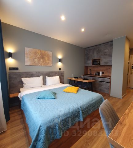 АПАРТАМЕНТЫ: Студия 20 м², 16 этаж из 24, совмещённый санузел, потолки 2,8 м. Дизайнерский ремонт с современной отделкой, окна на улицу, естественное освещение. Полностью готовы к заселению или аренде: кухня с индукционной плитой, холодильник, микроволновка, посуда, стиральная машина, кондиционер, кровать с ортопедическим матрасом, шкаф в прихожей.