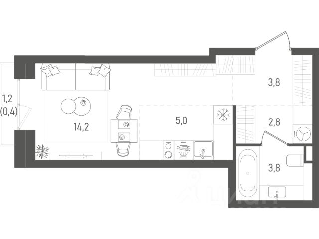 Квартира передаётся без отделки, а значит, вы не переплачиваете за чужие дизайнерские решения и материалы.