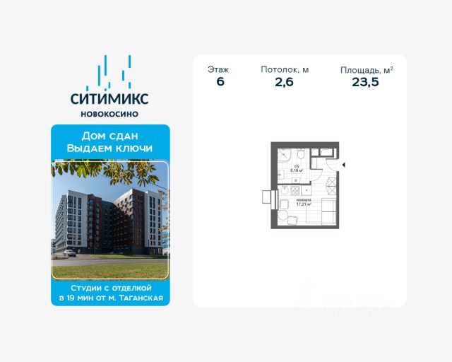Продаётся уютная студия-апартаменты в 9-ти этажном комплексе, общей площадью 16,3 кв.м., на 5 этаже. Апартаменты с чистовой отделкой "под ключ" и большими окнами. В некоторых лотах предусмотрен Эркер много света и очень красиво. Архитектурный облик комплекса выполнен в современном стиле, на огороженной территории благоустройство, зоны отдыха и детские площадки. На первых этажах вы найдете кофейни и рестораны, продуктовые магазины, центры бытовых услуг, аптеки и другие объекты необходимого сервиса. А современные лобби с витражным остеклением и дизайнерской отделкой порадуют жителей дневным светом и воздухом. Менее чем за 1 минуту пешком можно добраться до таких объектов, как: Ледовый дворец, Спортивный комплекс Косино и Клуб водных видов спорта Acquatica. Рядом с комплексом расположены: детские сады, множество школ, стоматология, центр развития ребенка, магазины, кафе и отделения банков. Район отличается хорошей экологией: озера Черное и Белое, а также Салтыковский лесопарк площадью 1012 га. Рядом с озёрами находится Косинский пляж с широкой чистой прибрежной полосой, песчаным берегом и зоной для игр в волейбол. МФК "СИТИМИКС Новокосино" находится в 15 минутах пешком от м. Новокосино, время поездки до центра Москвы займёт всего 30 минут. Дом сдан. Выдаём ключи. Застройщиком квартала выступает компания APSIS GLOBE, основанная в 2008 году. В качестве девелопера компания успешно завершила ряд инфраструктурных, коммерческих объектов на территории Московской области, Москвы, Санкт-Петербурга. В портфолио застройщика школа, детский сад, жилые и многофункциональные комплексы, комплексная застройка микрорайонов.