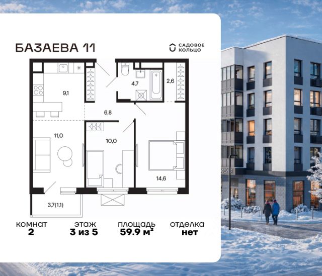 Продается квартира в ЖК "Базаева, 11" с 2 спальнями на 4 этаже 5 этажного дома. Общая площадь: 53.2 кв.м. Высота потолков 2.72 м. Срок сдачи 2 квартал 2027 г. Эскроу-счет. Застройщик ГК "Садовое кольцо". -Расположение Жилой комплекс в экологически чистом районе Московской области городском округе Шаховская. Камерное пятиэтажное здание находится в пешей доступности от всей необходимой инфраструктуры. Автостанция Шаховская расположена в 10 минутах от дома. Всего в 11 минутах ходьбы находится ж/д станция Шаховская, откуда удобно добраться электричкой до Рижского вокзала. Дорога до МКАД займет 1,5 часа на автомобиле. -Инфраструктура Проект расположен рядом с современным теннисным центром и Дворцом торжеств. В шаговой доступности — детская школа искусств, Шаховская гимназия, школа 1 и три детских сада. Всего за 3 минуты от дома можно дойти до Городского парка — здесь вас ждут аттракционы, верёвочный городок, тюбинговая горка и ресторан. Парк соседствует с живописным сквером у реки, украшенным подвесными мостами, ротондой и фонтанами. -Внутренний двор На территории проекта появится огороженная детская площадка, рассчитанная на детей всех возрастов, — с песочницей, канатным комплексом и зоной для игр. Для любителей активного образа жизни будет обустроена спортивная площадка с теннисным столом, турниками, тренажёрами и гимнастическими брусьями. Для автовладельцев на территории проекта предусмотрена удобная плоскостная парковка на 81 машино-место. -Архитектура Монохромное здание оформлено декоративным кирпичом и штукатуркой в тёплых светло-серых и насыщенных серых тонах. Эстетику фасада подчёркивают террасные ограждения и корзины для кондиционеров, выдержанные в единой цветовой гамме. -Входная группа Входные группы спроектированы на уровне земли — без ступеней и перепадов. Такой подход обеспечивает комфортный доступ в подъезд с коляской, чемоданом или велосипедом и подчеркивает продуманную архитектуру дома.