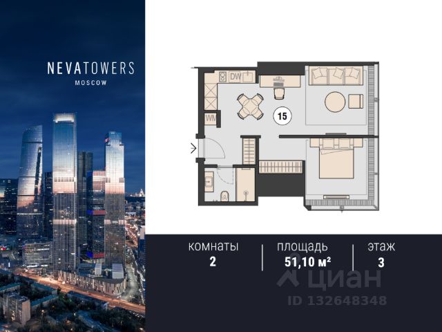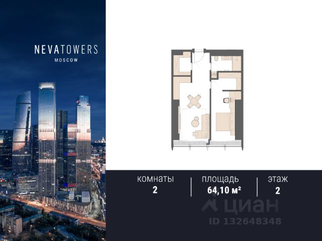 Премиум-апартаменты со скидкой 25% (указанная цена уже включает скидку) Один из последних эксклюзивных апартаментов в жилом комплексе Neva Towers в Москва-Сити. Беспроцентная рассрочка от застройщика от 3 до 24 месяцев. Есть возможность возврата НДС Предлагается апартамент с готовой отделкой в сданном и заселённом комплексе. Пространство полностью готово к проживанию, включая финишную отделку, установленную кухню с техникой и оборудованный санузел Площадь - 64,10 м², 2 этаж! Neva Towers — единственный жилой комплекс в Москва-Сити с собственным парком на уровне 4 этажа. Инфраструктура парка включает: • открытый бассейн • шезлонги и лаунж-зоны • детскую площадку • прогулочные и спортивные зоны (йога, места для отдыха и загара, открытая воркаут зона и др.) Расположен на 1-м Красногвардейском проезде. Комплекс имеет: • огороженную и приватную территорию • уникальный сквозной проезд к башням — без пропусков и препятствий • зону быстрой посадки/высадки • многоуровневый паркинг для жителей и гостей Neva Towers полностью заселён. Комплекс предоставляет инфраструктуру уровня премиального отеля: • фитнес-клуб с бассейном и открытым джакузи • SPA-зоны, закрытый кинозал • рестораны и кафе (Кофемания, Ivanka, TimeLess, Bluefin и др.) • химчистка, аптека, private bank, салон красоты и многое другое Готовое пространство в одном из самых престижных и инвестиционно привлекательных жилых комплексов Москвы. Остались единичные предложения."