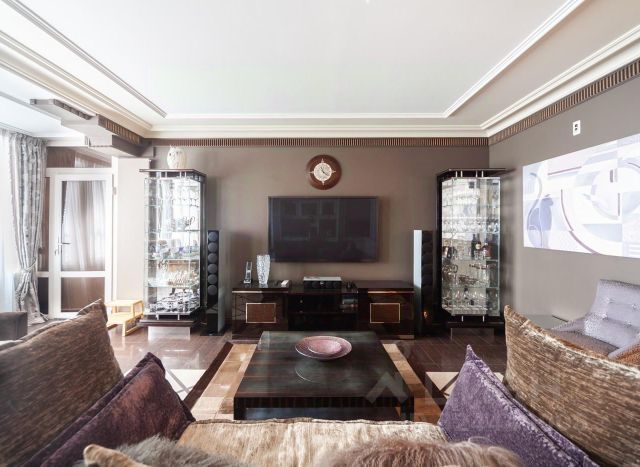 Продуманная до мелочей планировка квартиры: семейная кухня-гостиная с зоной отдыха и встроенным домашним кинотеатром Bower and wilkins, кухонный гарнитур Scavolini, производство Италия) с бытовой техникой kuppersbusch (посудомоечная машина, кофемашина, микроволновая печь, духовка и варочная панель)