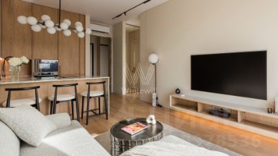 Общая площадь квартиры составляет 49 кв. м, жилая площадь — 31 кв. м, площадь кухни — 12 кв. м. Квартира расположена на 8 этаже 41 этажного дома с видовой площадкой на крыше.