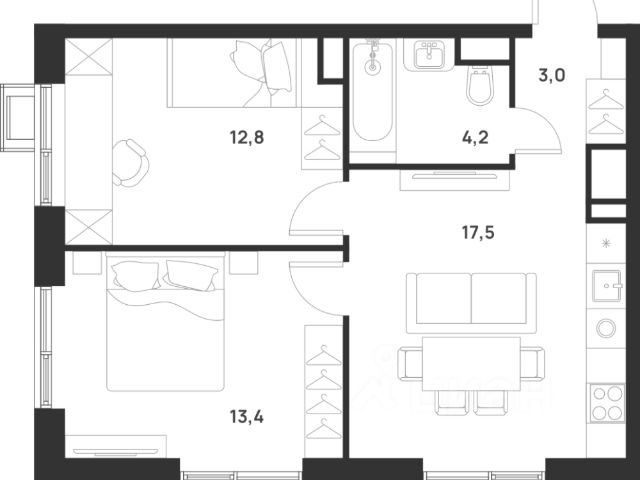 Предчистовая отделка в подарок! Пешая доступность от метро и московская прописка! Продается уютная 2-комн. квартира площадью 64,3 кв.м на 14 этаже 17 этажного жилого комплекса бизнес-класса Foreville от 3S Group. Общая площадь: 64,3 кв.м., жилая: 39,8 кв.м., площадь кухни-гостиной: 22,3 кв.м., высота потолков: 2,72 м., окна выходят во двор и на улицу. Квартира предлагается без отделки, что идеально подходит для воплощения собственного дизайнерского решения. Также доступна опция предчистовой отделки, стоимость которой включается в общую цену квартиры. О проекте: Пространство Комплекс располагает крупнейшим приватным двор-парком в Новой Москве площадью 1,2 Га, предлагая жителям огромное пространство для отдыха, спорта и игр на свежем воздухе. Природный ландшафт Внутренний лесопарк с более чем 183 взрослыми деревьями и 10 320 цветущими кустарниками создает уникальную природную атмосферу для каждого времени года. Игровые и спортивные зоны Обширные площадки с безопасным покрытием, специализированные зоны для детей разных возрастных групп и взрослых, включая воркаут и настольный теннис, способствуют активному и здоровому образу жизни. Экологичность и долговечность Использование натуральных материалов, таких как лиственница, и крупноформатной бетонной плитки для покрытия, подчеркивает стремление проекта к экологичности и устойчивости. Безопасность и уединение Внутренний двор без машин обеспечивает безопасность для детей и спокойствие для взрослых. Территория огорожена и находится под круглосуточным видеонаблюдением. Сохранение времени Благодаря превосходной транспортной доступности и близости к новой станции метро Корниловская, Foreville позволяет жителям экономить время для семьи и отдыха на природе, минимизируя необходимость длительных поездок. Foreville не просто жилье, а целая экосистема для комфортной и гармоничной жизни на свежем воздухе, совмещая преимущества городской инфраструктуры и непосредственную близость к природе.