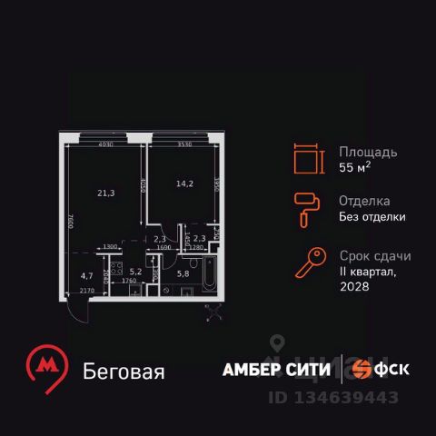 Прямая продажа от застройщика! Успейте забронировать квартиру до повышения стоимости! Жилой Комплекс премиум-класса. Продаётся 2-к квартира номер 1296 общей площадью 45.6 кв.м. на 53-м этаже 57 этажного здания. Без отделки. Цена с учётом скидки. Особенности квартиры: - Организуем показ в удобное для вас время! - Мастер-зона с санузлом и гардеробной. Всё для вашего комфорта и удобства, включая личный санузел и гардероб. - Просторная спальня, в которой можно разместить большую кровать. - Линейная планировка - максимальная функциональность и удобство. - Увеличенная ширина окна/окон - больше света и визуального простора. - Увеличенная высота окна - больше воздуха и света. - Гостевой санузел - комфорт и удобство для ваших гостей. - Ниша под стиральную машину - удобство и экономия пространства. - Евроформат - просторное и удобное жилье с отличной планировкой. - Гибкая планировка - создайте пространство по своему вкусу. - Место для игры/занятия спортом - идеальное пространство для активных детей. - Линейная кухня - функциональность и практичность в одном решении. - Проходная кухня-гостиная - идеальное пространство для общения и готовки. - Гардеробная - удобство для хранения и организации вещей. - Ниша под шкаф - компактное и удобное место для вещей. Квартира без отделки. Чистый холст для воплощения интерьера вашей мечты. Информация о комплексе: ЖК "Амбер Сити" - вдохновляющий квартал у Москва-Сити с архитектурой мирового уровня. Здесь кипит жизнь 24/7: парки, инфраструктура и виды на центр без городской суеты. Самодостаточная среда для работы, творчества и семьи в духе лучших районов Нью-Йорка и Гонконга. Транспортная доступность: Квартал с исключительной транспортной доступностью: ключевые точки Москвы в 15-20 минутах. Полное погружение в деловую и культурную жизнь столицы с минимальными затратами времени на дорогу. Общественный транспорт: - Метро "Беговая" - 5 минут пешком - Остановка "2-й Хорошёвский проезд" - 3 минуты пешком - Метро "Звенигородская" (строящаяся) - 10 минут пешком На автомобиле: - Москва-Сити - 10 минут - Звенигородское шоссе - 3 минуты - ТТК - 5 минут - Серебряный бор - 8 минут - Садовое кольцо - 12 минут - Кремль - 20 минут - Шереметьево - 40 минут Внутренняя инфраструктура: ЖК "Амбер Сити": многоуровневый ландшафт на 6 гектарах с зелёным бульваром, объединяющим арт-объекты, водные зоны и архитектурные формы. В закрытых дворах на стилобате - детские площадки с сенсорными элементами, зоны отдыха с креслами и настилами для йоги. Навесы с подогревом и зарядками для зимнего сезона. Активности на любой вкус: настольный теннис, петанк, чтение в тишине на оборудованных скамейках. Продуманное пространство для ежедневного отдыха и игр детей и взрослых. Квартира на проезде 3-й Хорошевский в Москве.
