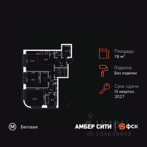 Прямая продажа от застройщика! Успейте забронировать квартиру до повышения стоимости! Жилой Комплекс премиум-класса. Продаётся 4-к квартира номер 1238 общей площадью 94.6 кв.м. на 48-м этаже 57 этажного здания. Без отделки. Цена с учётом скидки. Особенности квартиры: - Организуем показ в удобное для вас время! - Мастер-зона с санузлом и гардеробной. Всё для вашего комфорта и удобства, включая личный санузел и гардероб. - Угловая планировка - больше пространства для ваших идей. - Увеличенная ширина окна/окон - больше света и визуального простора. - Увеличенное количество окон - дополнительное освещение и свежий воздух. - Нестандартное окно - особенный акцент в вашем интерьере. - Увеличенная высота окна - больше воздуха и света. - Панорамное окно - создайте атмосферу открытости и простора. - Гостевой санузел - комфорт и удобство для ваших гостей. - Постирочная - организуйте пространство для стирки и сушки вещей. - Евроформат - просторное и удобное жилье с отличной планировкой. - Место для игры/занятия спортом - идеальное пространство для активных детей. - Можно оборудовать 2 или более рабочих места - пространство для нескольких человек. - Линейная кухня - функциональность и практичность в одном решении. - Проходная кухня-гостиная - идеальное пространство для общения и готовки. - Просторная гардеробная - место для вашего личного пространства. - Ниша под шкаф - компактное и удобное место для вещей. Квартира без отделки. Чистый холст для воплощения интерьера вашей мечты. Информация о комплексе: ЖК "Амбер Сити" - вдохновляющий квартал у Москва-Сити с архитектурой мирового уровня. Здесь кипит жизнь 24/7: парки, инфраструктура и виды на центр без городской суеты. Самодостаточная среда для работы, творчества и семьи в духе лучших районов Нью-Йорка и Гонконга. Транспортная доступность: Квартал с исключительной транспортной доступностью: ключевые точки Москвы в 15-20 минутах. Полное погружение в деловую и культурную жизнь столицы с минимальными затратами времени на дорогу. Общественный транспорт: - Метро "Беговая" - 5 минут пешком - Остановка "2-й Хорошёвский проезд" - 3 минуты пешком - Метро "Звенигородская" (строящаяся) - 10 минут пешком На автомобиле: - Москва-Сити - 10 минут - Звенигородское шоссе - 3 минуты - ТТК - 5 минут - Серебряный бор - 8 минут - Садовое кольцо - 12 минут - Кремль - 20 минут - Шереметьево - 40 минут Внутренняя инфраструктура: ЖК "Амбер Сити": многоуровневый ландшафт на 6 гектарах с зелёным бульваром, объединяющим арт-объекты, водные зоны и архитектурные формы. В закрытых дворах на стилобате - детские площадки с сенсорными элементами, зоны отдыха с креслами и настилами для йоги. Навесы с подогревом и зарядками для зимнего сезона. Активности на любой вкус: настольный теннис, петанк, чтение в тишине на оборудованных скамейках. Продуманное пространство для ежедневного отдыха и игр детей и взрослых. Квартира на проезде 3-й Хорошевский в Москве.