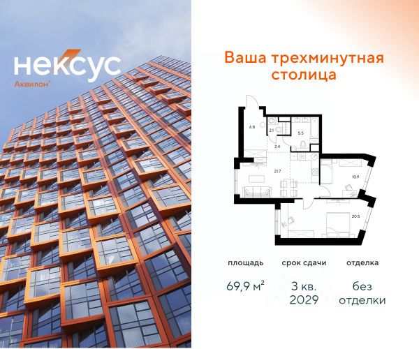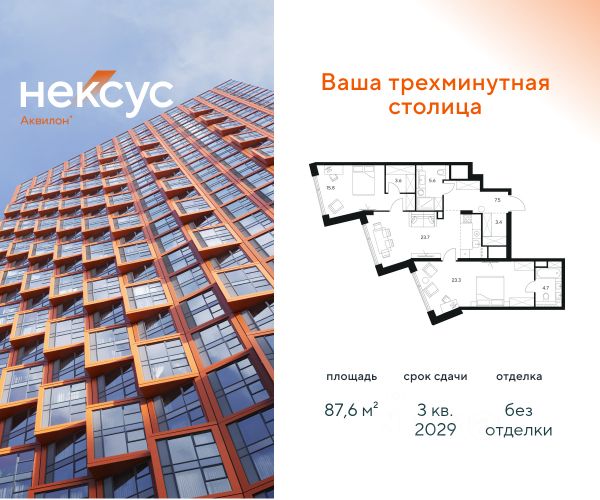 Продажа от застройщика. О проекте: В основе Несус Аквилон лежит принцип трехминутного города, где вся жизнь: работа, отдых, здоровье, общение и культура сосредоточены в шаговой доступности. Он не просто экономит время, а кардинально перераспределяет его. В этих условиях главным логистическим узлом становится лифт, который в считанные секунды переносит из квартиры в собственный фитнес-рум, панорамный двор или современный коворкинг. Здесь вы сами решаете: оказаться в эпицентре событий, чувствуя пульс мегаполиса, или наслаждаться тишиной и приватностью своего пространства. И главное — вы можете переключаться, находя идеальный баланс каждый день. Несус Аквилон - ваша трехминутная столица! Транспортная доступность Несус Аквилон дарит независимость от расстояний и логистики. Ваше время теперь принадлежит только вам меньше минуты до метро Молодежная 2 минуты до Рублевского шоссе 10 минут до Проспекта Багратиона 15 минут до Москва-Сити 10 минут до МКАД 20 минут до ТТК Архитектура 46-этажная башня станет новой архитектурной доминантой, символизирующей динамику и технологичность современной жизни.Комбинация алюминиевых кассет, стеклофибробетона и витражного остекления фасада создает монументальную оболочку, а теплая цветовая гамма добавляет масштабной форме визуальной теплоты. Три разных по характеру стороны башни — от строгой "зубчатой" геометрии до живописных эркеров — создают многогранный, ритмичный образ, дополняемый невесомыми балконами со стеклянным ограждением. Архитектура проекта живет в диалоге с городом: променад вдоль парящего стилобата со стрит-ретейлом становится естественным продолжением общественного пространства. Планировки в концепции Разумные метры Мы создали квартиры, где пространство работает на ваш комфорт. В основе концепции "Разумные метры" правильная геометрия помещений и тщательно продуманные эргономичные решения. - Высота потолков до 3,55 метров - Многообразие планировок: от студий до четырехкомнатных квартир классического и евро-формата - Многофункциональные пространства: кухни-гостиные для приема гостей и зонированные мастер-спальни - Продуманная инфраструктура быта: отдельные постирочные и гостевые санузлы - Удобные системы хранения: встроенные ниши и гардеробные зоны - Уникальные форматы: пентхаусы, комнаты с двумя окнами, угловое панорамное остекление - Возможность открытия окон на всех высотах Для студий и однокомнатных квартир мы предлагаем готовое решение — отделку White box, позволяющую сразу приступить к чистовому ремонту на ваш вкус. Для остальных планировок предусмотрена черновая отделка, чтобы воплотить все интерьерные пожелания. Здесь пространство адаптируется под ваш образ жизни, а не вы подстраиваетесь под планировку. Приватное благоустройство Скрытый на виду панорамный двор-терраса, расположенный на высоте 7 метров, объединил внутреннюю камерность и внешнюю динамику городской жизни. - Многоуровневое озеленение с всесезонными композициями, сохраняющими декоратив