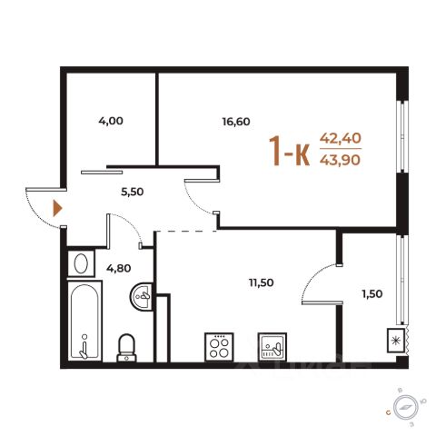 Продаётся 1-комнатная квартира в строящемся доме (Корпус 1), срок сдачи: I-кв. 2026, общей площадью 43.9 кв.м., на 3 этаже. Комплекс отдельно стоящих жилых корпусов с нежилыми помещениями и подземной автостоянкой.
