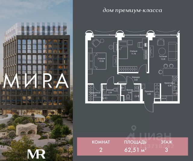 Прямая продажа от застройщика. Продаётся 1-комнатная квартира общей площадью 38.73 м² без отделки в доме премиум-класса МИRА на 7-м этаже 23 этажного дома. Квартира расположена в корпусе 2. Дом премиум-класса МИRA это: • Спокойный район с богатой историей и сложившейся инфраструктурой • Авторская архитектура на стыке классики и современности • Вход в парк прямо из жилого комплекса • Панорамные виды на Яузу, парки, ВДНХ и скульптуру "Рабочий и колхозница" • Удобные сервисы и безопасность для каждого резидента Расположение: Жилой квартал расположен в Алексеевском районе на северо-востоке Москвы, на второй линии домов, таким образом вы сможете дистанцироваться от шума и суеты проспекта Мира, но при этом будете жить недалеко от этой важной городской магистрали. Прямо у дома: • Парк Акведук • Река Яуза • Памятник "Рабочий и колхозница" Пешком: • 16 мин м. ВДНХ На автомобиле: • 12 мин ТТК • 15 мин Садовое кольцо • 12 мин Национальный парк "Лосиный остров" Благоустройство: Концепция благоустройства от бюро "ДРУЖБА" разработана в стиле "Лесная тропа". В уютном дворе расположились словно затерянные в лесу, площадки для отдыха. Они разделяются островками с травами, кустарниками, крупными камнями и деревьями, между которыми проходят узкие песчаные тропинки с деликатной подсветкой по вечерам. Центральной точкой притяжения для жителей станет главная площадь с фонтаном, которая открывается сразу из двух входных групп. Внутренний двор МИRA: • Детская площадка с зонами для игр малышей до трех лет и детей более старшего возраста • Спортивная площадка с профессиональным оборудованием для тренировок • Декоративные перголы • Воздушный арт-объект с подсветкой, похожий на облако • Чайный домик, где в отдельном отапливаемом павильоне можно в любое время года попить кофе с соседями или устроить камерное семейное чаепитие • Зоны для работы и отдыха с гамаком под навесом, скамейками и креслами Инфраструктура и окружение: В Алексеевском районе есть огромные благоустроенные парки, магазины, гимназии с высоким рейтингом и филиалы ВУЗов, частные и государственные детские сады, модные кофейни и фитнес-центры. В квартале МИRА предусмотрены: • 2 ресторана с видом на парк Акведук • 3 кафе • фитнес-студия • подземный паркинг на 330 машино-мест Компания MR Group предлагает своим клиентам специальные условия приобретения квартир в рамках программ ипотечного кредитования от банков-партнеров. Купить квартиру в районе Алексеевский в Москве.