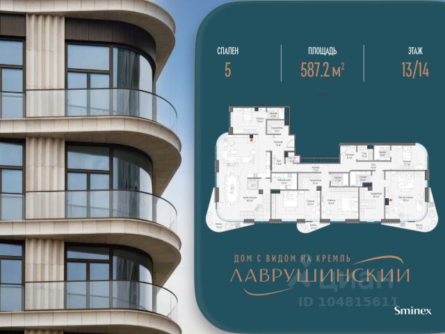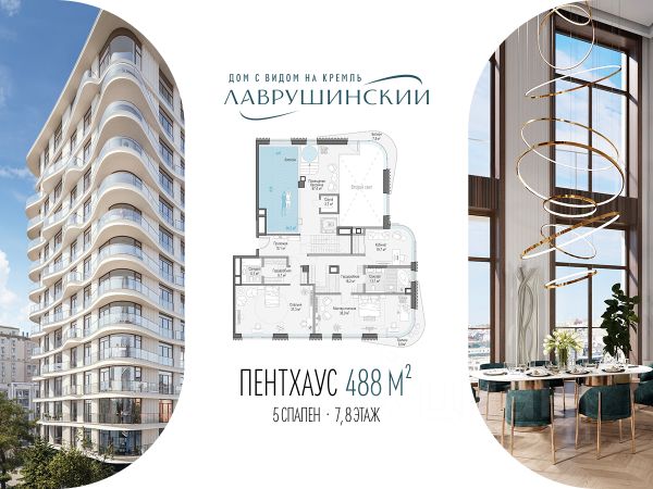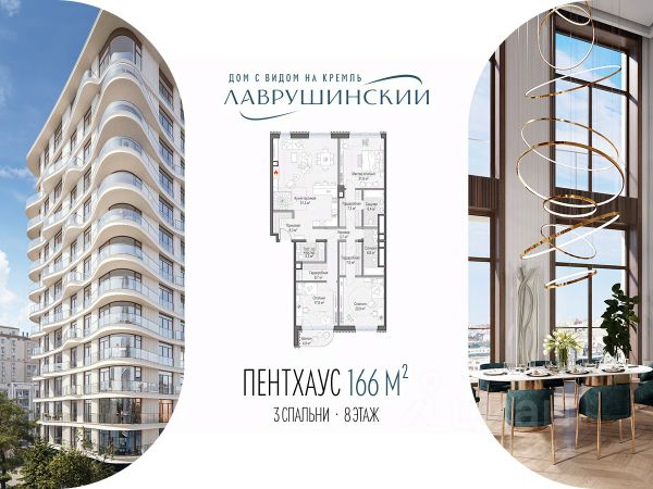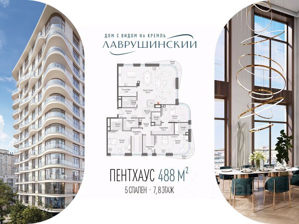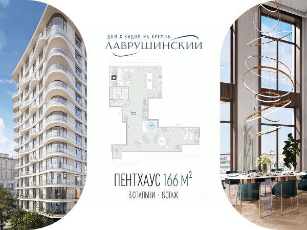 "Лаврушинский" - бескомпромиссный дом с лучшими видами на Кремль. Благодаря расположению всего в одном километре от Кремля, своей высоте и малоэтажной окружающей застройке, из квартир открываются поразительные прямые виды на главные достопримечательности центра Москвы, включая храм Христа Спасителя и собор Василия Блаженного. Расположение в глубине квартала, посередине парка, дает удивительное для центра ощущение тишины и простора. На закрытой территории находится самый большой на элитном рынке собственный ландшафтный парк площадью 1,4 га с фонтаном, ручьём, зонами для воркаута и тихого отдыха. KIDS LAB: развивающая детская площадка на улице и игровая комната в помещении. FIT LAB: фитнес-клуб с 25-метровым бассейном, beauty room, доступные только для жителей. В проекте уникальный выбор квартир с просторными балконами, пентхаусов с террасами, басcейнами и каминами, максимальными видовыми характеристиками, а также роскошных вилл. Всего - 153 квартиры и 101 продуманное планировочное решение. Высота потолков составляет от 3,5 до 8,25 м. В доме предусмотрен 2х-уровневый паркинг на 279 машино-места. В доме предусмотрен полный комплекс систем комфорта, включающий приточно-вытяжную вентиляцию с тонкой фильтрацией с принципом забора воздуха с высоты 50 метров для повышения продолжительности жизни, отдельный сервисный лифт для обслуживающего персонала и другие современные системы.