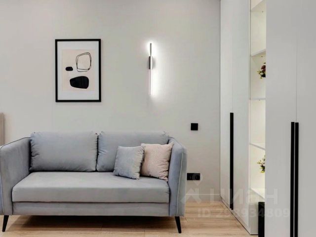 В большой комнате кондиционер, выделена просторная гардеробная, которая решает вопрос хранения гораздо эффективнее шкафов, а также двуспальная кровать с подъемным механизмом.
