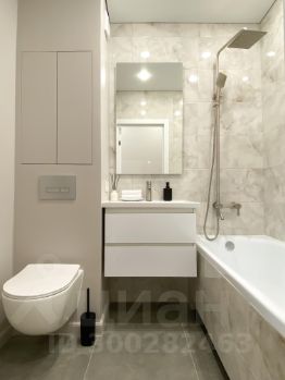 Просторный объединённый с/узел продуман до мелочей - зоны для хранения, удобно расположены розетки, тропический душ, теплый пол, принудительная вытяжка, электрический полотенцесушитель.