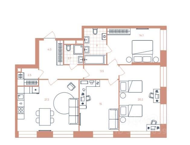 Проектная площадь квартиры: 131,2 кв. м.