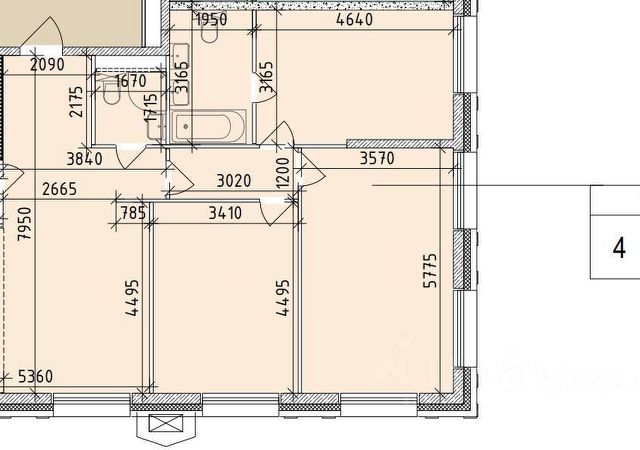 - С/У 3: 4,6   кв. м.