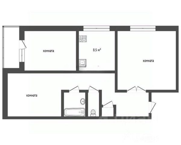 - 2 изолированные комнаты (17.53м2, 17.9м2);