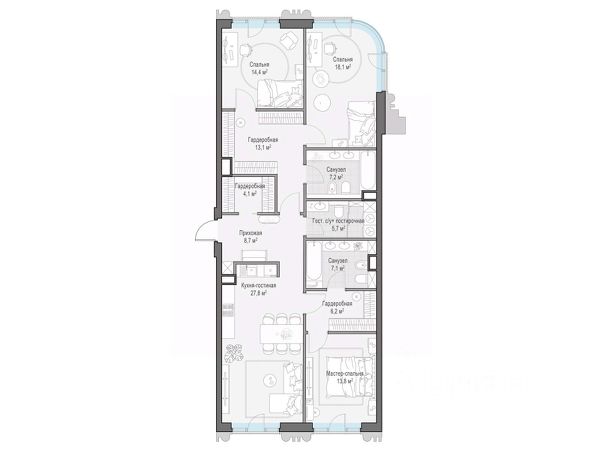 В продаже 3-комнатная квартира квартира в элитном квартале "Тишинский бульвар". Общая площадь квартиры - 124.40 кв.м. Этаж 6 из 14. Корпус Ивовый 6. "Тишинский бульвар" - тихий зелёный элитный квартал на Тишинке, в престижном и комфортном районе центра Москвы. В нём создан уникальный для элитного дома прогулочный бульвар в своём огромном парке 1,9 га. В парке оборудованы зоны для активного и тихого отдыха, крытые галереи, приватные зелёные комнаты, многофункциональная спортивная площадка, воркаут-зона, детская площадка, сухой фонтан, ручей. В пешей доступности Римско-католический кафедральный собор. Всего в полутора километрах от квартала находятся Патриаршие пруды - излюбленное место для летних прогулок, воскресных бранчей и романтических ужинов. Белая площадь расположена ещё ближе - на расстоянии 1,2 километра. Это точка концентрации деловой жизни и модных ресторанов. В "Тишинский бульваре" только для жителей и их гостей создан уникальный для элитного дома прогулочный бульвар в собственном огромном парке площадью 2,1 га, который занимает 70% территории квартала. Бульвар проходит через весь квартал и объединяет в общее пространство три двора: Кленовый, Рябиновый и Ивовый. В парке созданы крытые галереи и приватные зелёные комнаты для отдыха и медитаций в любую погоду. Насыщенное озеленение многолетними растениями с разными периодами цветения сохраняет территорию квартала красивой круглый год. В квартале насыщенная инфраструктура только для жителей, включая Clubhouse. Здесь оборудованы пространства для здорового образа жизни по стандарту FIT LAB: в парке - многофункциональная спортивная площадка, воркаут-зона, место для занятий йогой и медитации; бесплатный фитнес-клуб с бассейном. Для маленьких жителей доступны детская площадка и игровая комната по стандарту KIDS LAB. Дома оснащены самыми полными и лучшими системами.