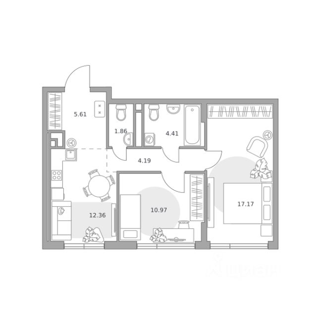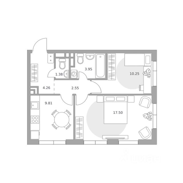Продаётся 2-комнатная квартира 284, площадью 61,65 м², на 18 этаже в ЖК "MYPRIORITY Нижегородская" корпус 1. Стоимость — от 25869277 руб. Квартира без отделки, планировка односторонняя, окна во двор.