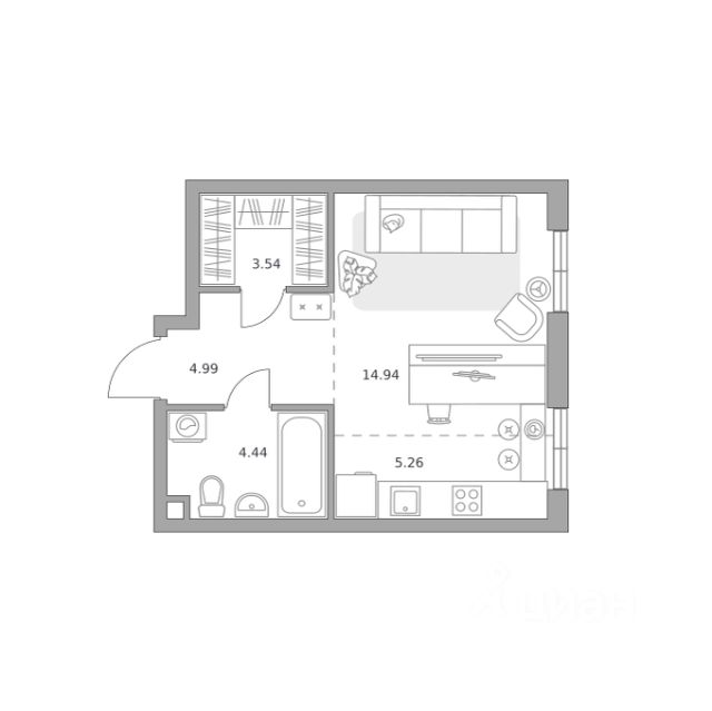 Продаётся 1-комнатная квартира 26, площадью 35,13 м², на 4 этаже в ЖК "MYPRIORITY Нижегородская" корпус 1. Стоимость — от 17201132 руб. Квартира без отделки, планировка односторонняя, окна на улицу.